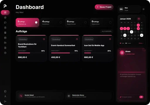Die Bearbeitungszeit variiert je nach Projektumfang. Einfache Designs wie Social Media Posts sind oft innerhalb von 1-3 Werktagen fertig. Komplexere Projekte wie Branding-Pakete oder Webdesign können 1-3 Wochen dauern. Die geschätzte Lieferzeit wird Ihnen bei jeder Dienstleistung angezeigt.